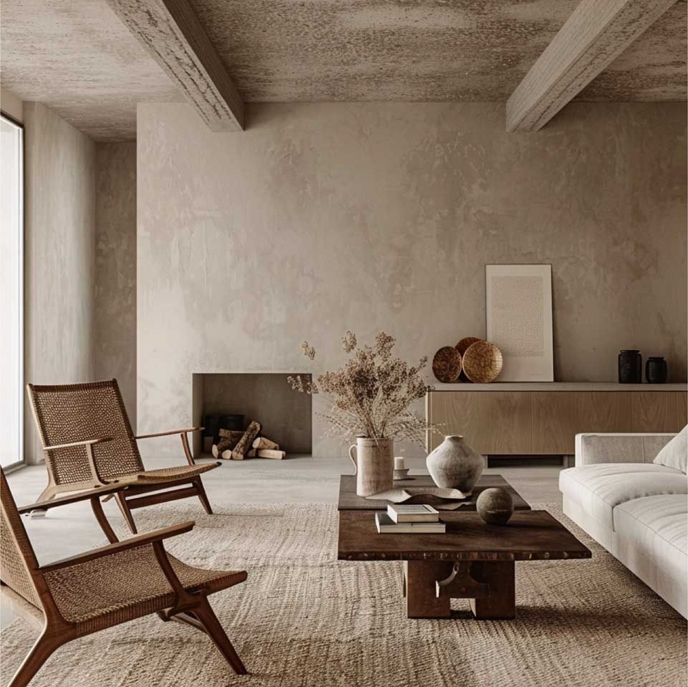 Không gian Wabi-Sabi không cố gắng “đẹp hoàn hảo”, mà hướng đến cảm xúc khi sống trong đó. Một vết nứt nhỏ trên gỗ, bề mặt đá thô, hay màu sắc trầm lắng đều trở thành một phần của câu chuyện không gian.